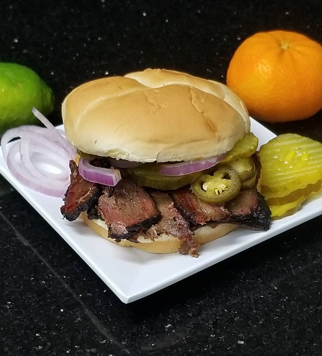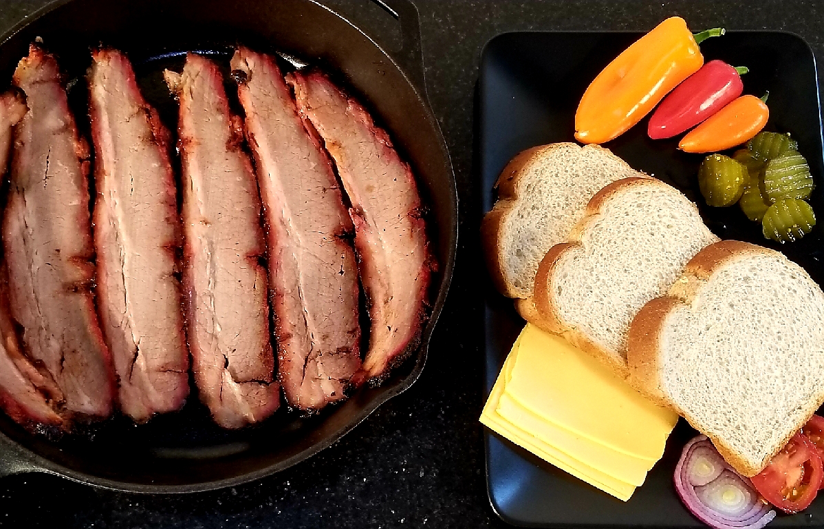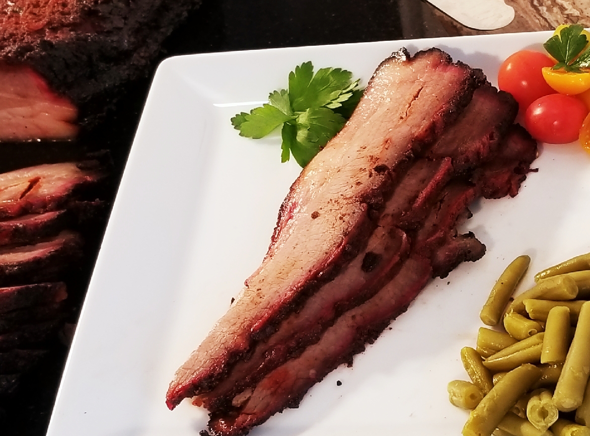 Pecan wood smoked, Salted and thinly sliced sliced Brisket.